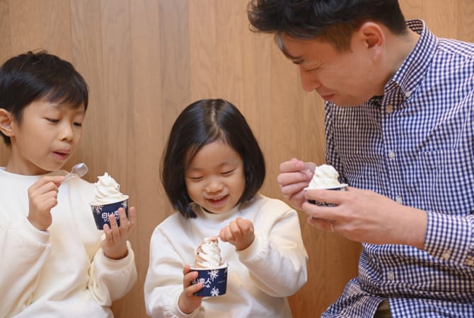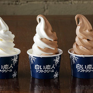オリジナル缶を作っている間にティータイム!白い恋人ソフトクリームや、白い恋人ブレンドコーヒーで休憩。