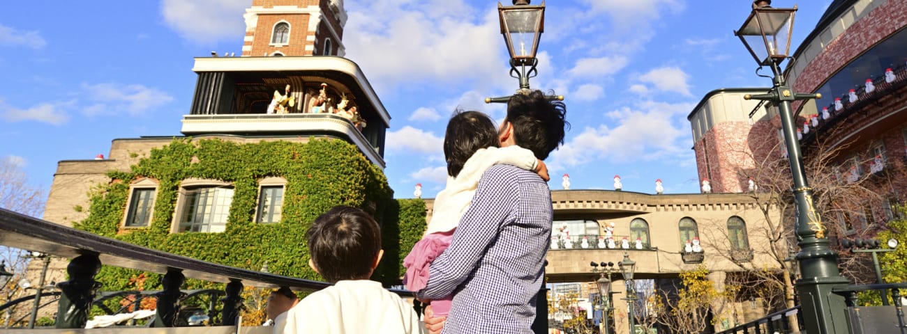 小さなお店やお家が立ち並ぶ街。今日はパパがお客さん!
