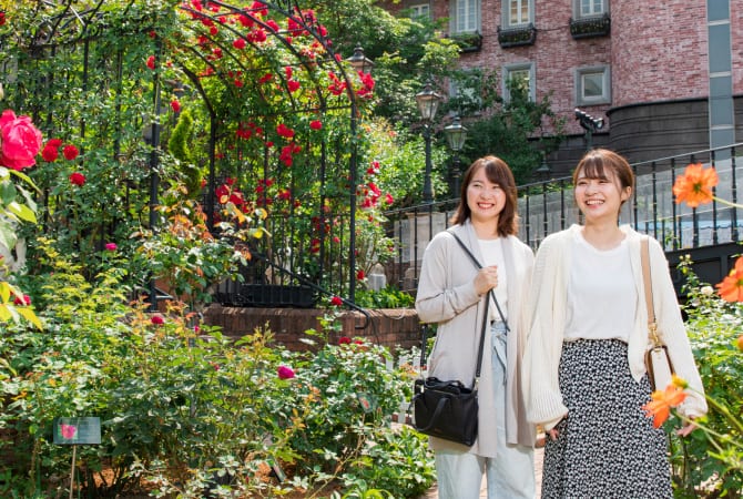 English-style courtyard is filled with colorful roses, and the beautiful scenery includes a rose arch and fountain. There are also late-blooming varieties, so you can enjoy them until late October. 200 roses are planted, featuring 120 varieties including English rose and classic rose are impressive. Look for your favorite type.