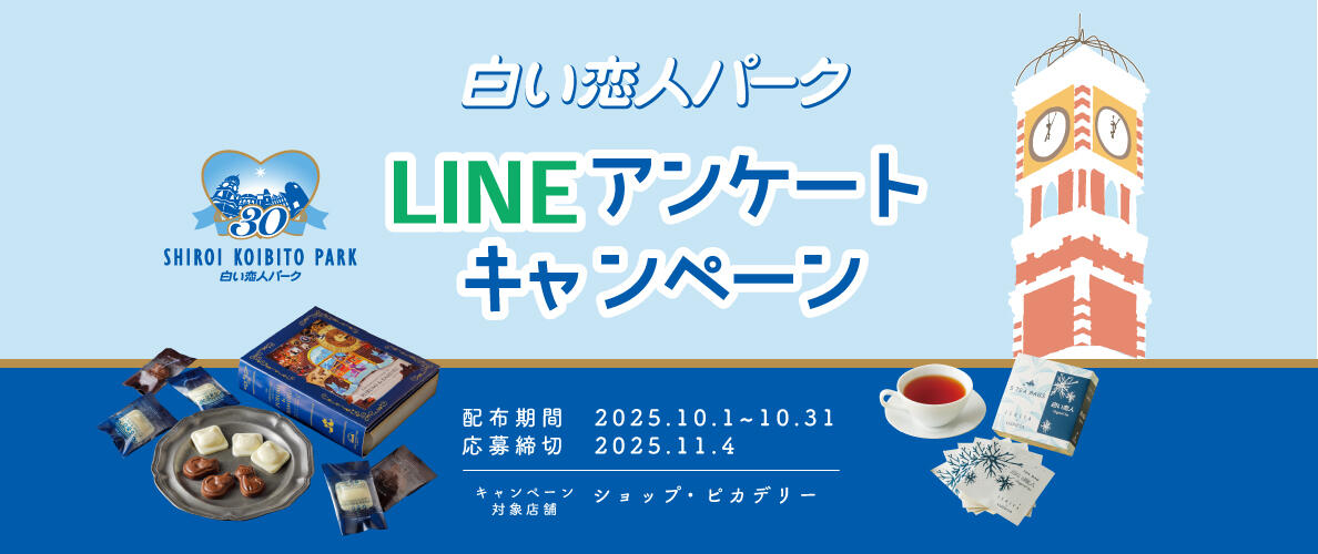 期間中、白い恋人パーク ショップ・ピカデリーをご利用のお客様を対象に、ISHIYA公式LINE(@ishiya)上でご応募いただけるアンケートキャンペーンを実施いたします。