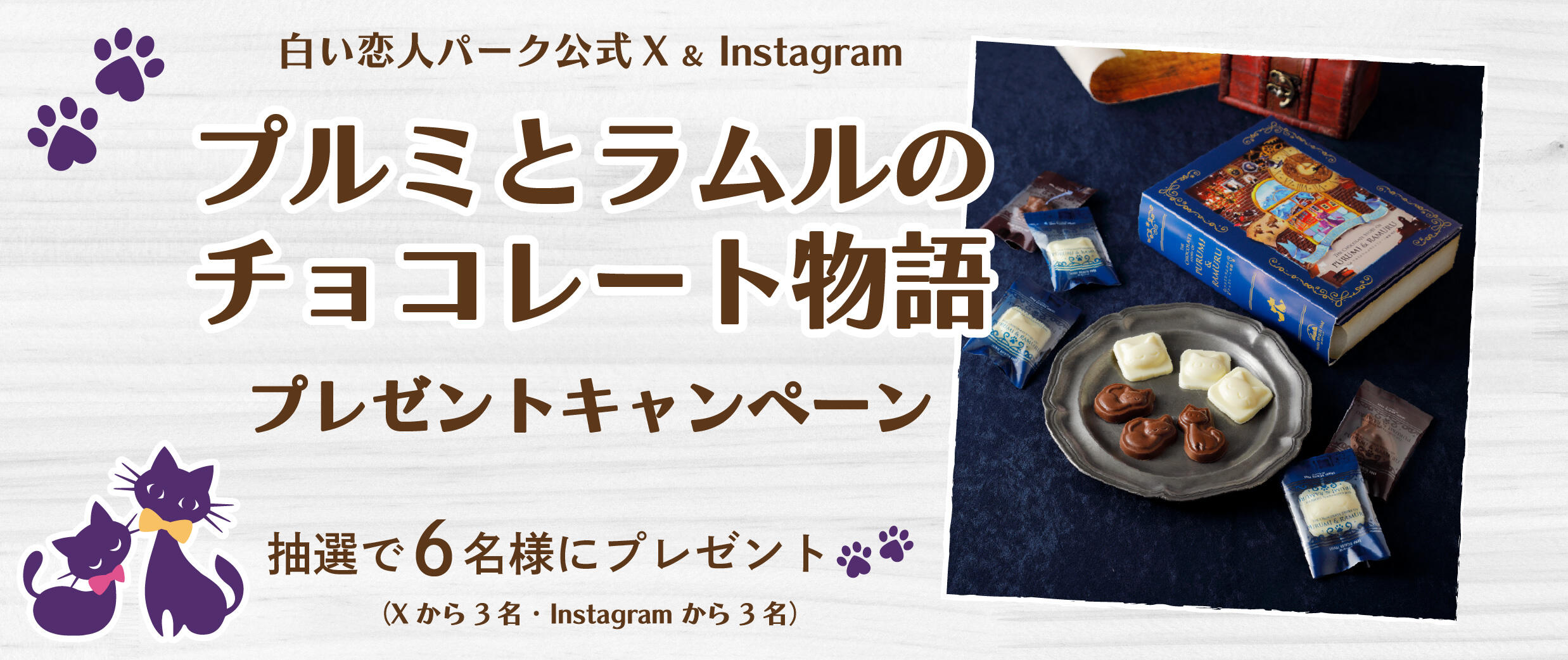 ということで、抽選で6名様(Xから3名・Instagramから3名)に白い恋人パーク限定商品「プルミとラムルのチョコレート物語」をプレゼント!
