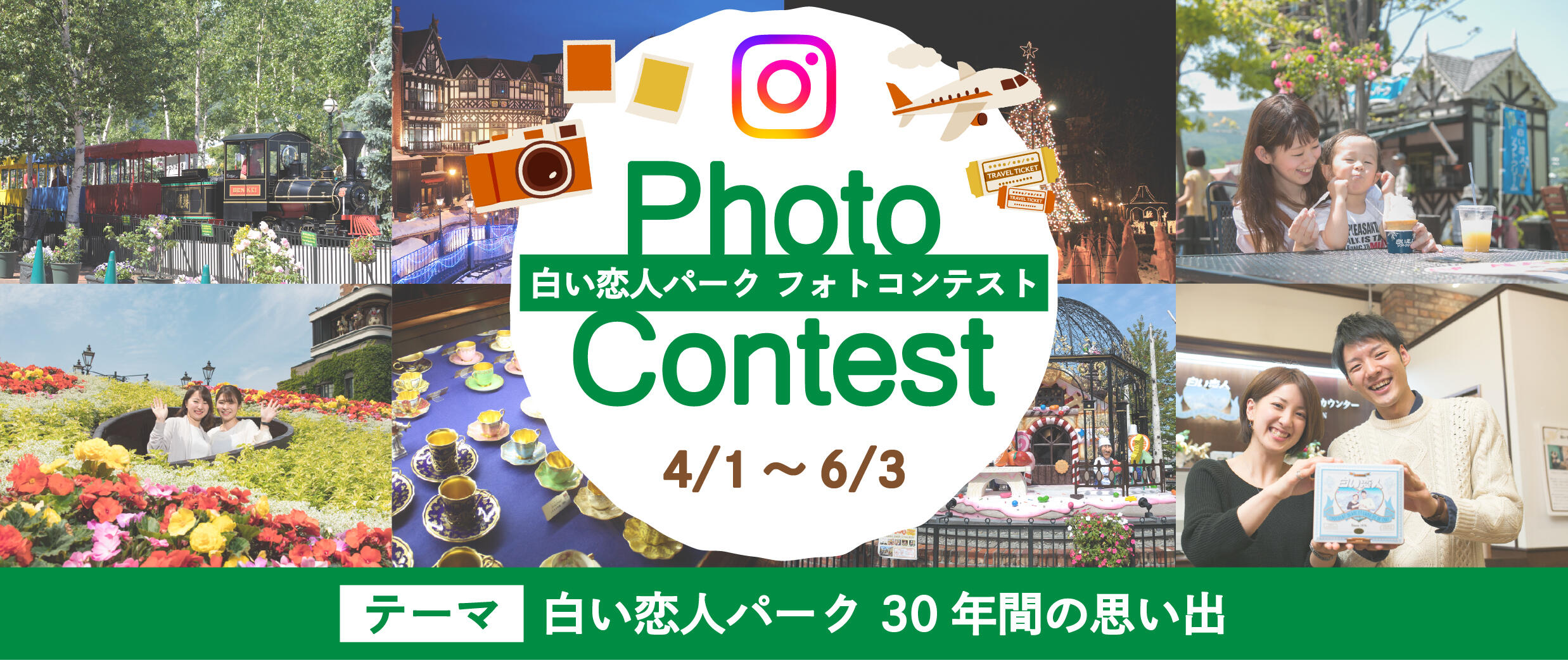 白い恋人パークにまつわる思い出の写真に「#白い恋人パーク30周年思い出フォトコンテスト」のハッシュタグをつけてInstagramに投稿してね♪