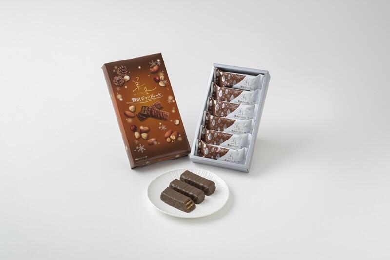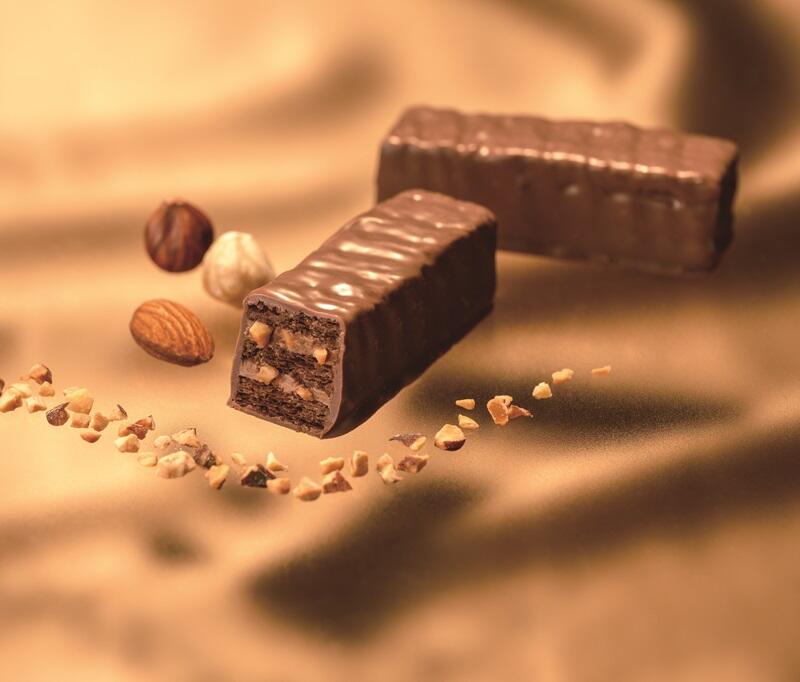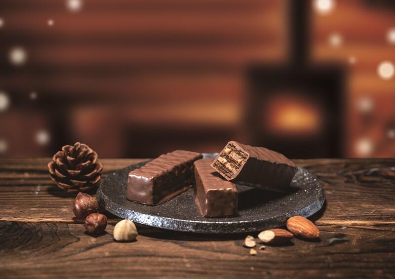 ヘーゼルナッツとアーモンドのジャンドゥーヤフィリングをサクサクのココアパイでサンドし、くちどけなめらかなクーベルチュールのミルクチョコレートで包み込みました。
