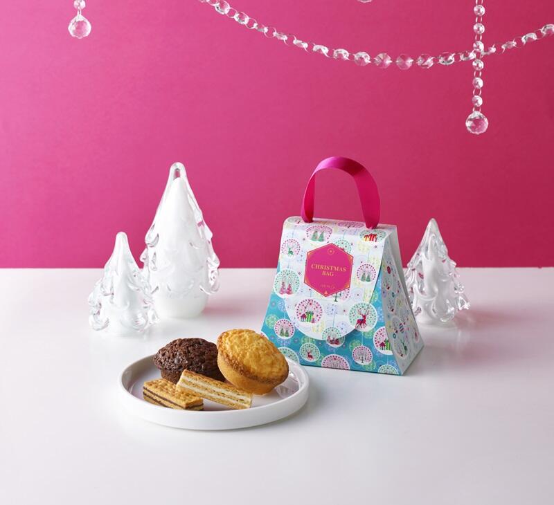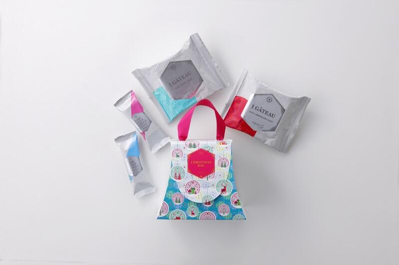 クリスマスモチーフが描かれたバッグ型の箱に、人気商品「アイガトー」と「ザクミルフィーユ」を詰め合わせたアソート。バッグのように持ち歩きたくなるようなかわいらしいパッケージは、クリスマスのプチギフトにもおすすめです。