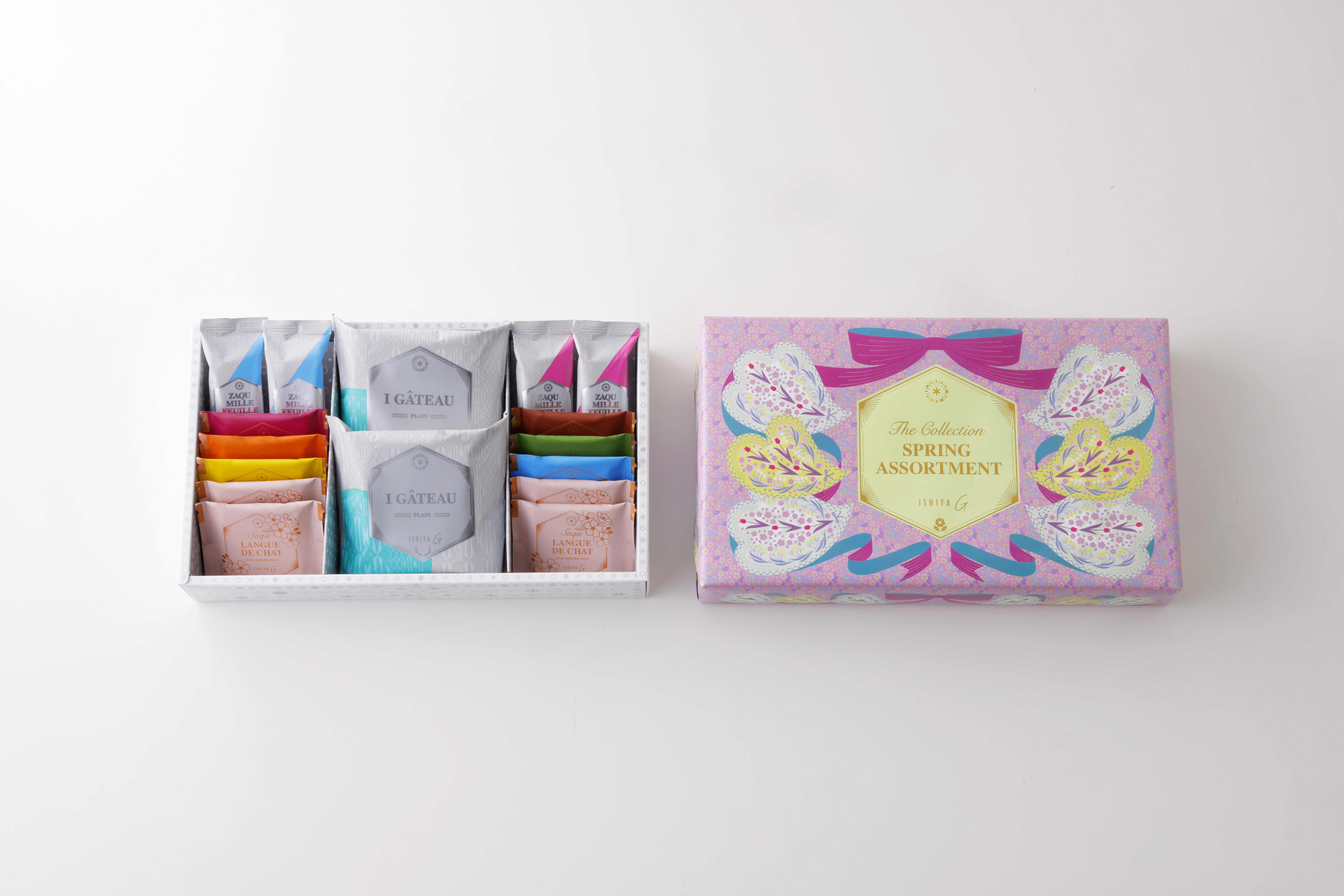 「サク ラング・ド・シャ」の期間限定フレーバー「さくら」を含む7種と、人気商品「アイガトー(プレーン)」、「ザクミルフィーユ」を詰め合わせたアソート。