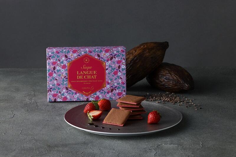 とちおとめパウダーを使用したストロベリーチョコを、ほろ苦いラング・ド・シャでサンドしました。